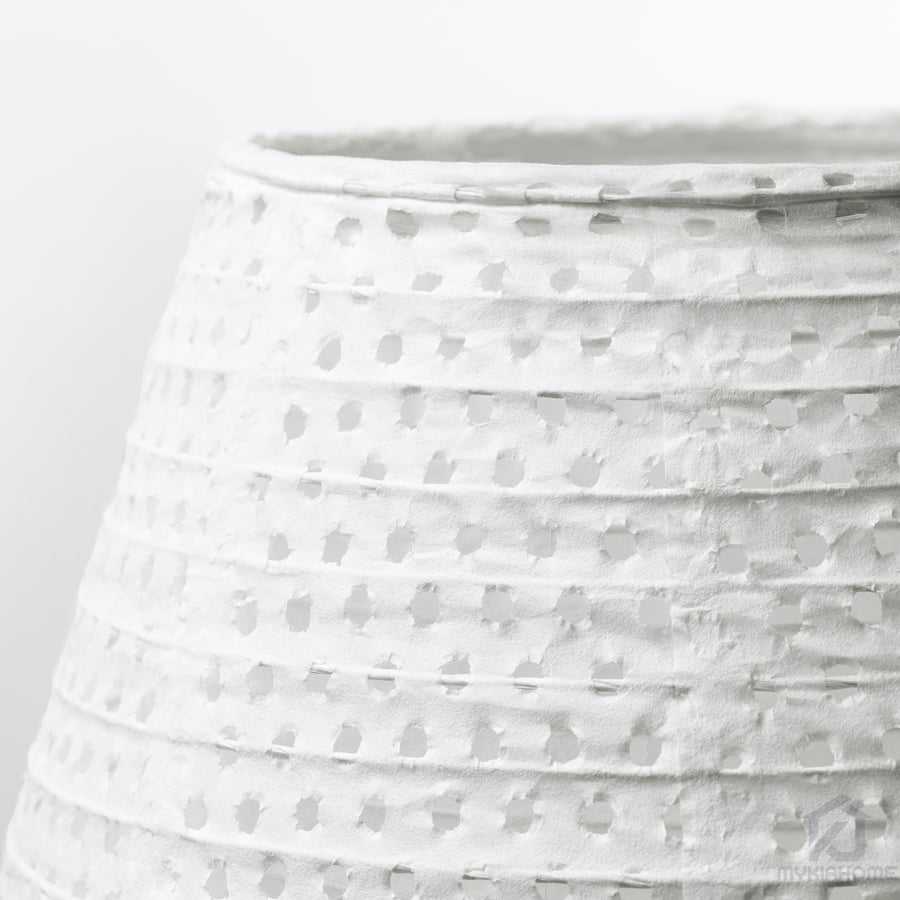 آباژور ایستاده ایکیا مدل SOLLEFTEA، یک مدل از آباژور زیبا و خاص ایکیا است. شکل گرد و تپل آن با دو لایه کاغذ برنجی عمق بیشتری پیدا میکند. لایه داخلی ساده و لایه بیرونی سوراخدار است. این کار لامپ را پنهان میکند و نوری نرم و بدون تابش خیرهکننده پخش میکند. شما میتوانید با یک لامپ کاغذی که نوری پخششده و تزئینی پخش میکند، فضایی نرم و دنج در خانه خود ایجاد کنید. IKEA لامپ LED لوستری E14 سفید اوپال (۳ عدد) را توصیه میکند. طول سیم آن 1.7 متر است. آباژور ایستاده ایکیا مدل SOLLEFTEA را فقط با یک پارچه خشک تمیز کنید.