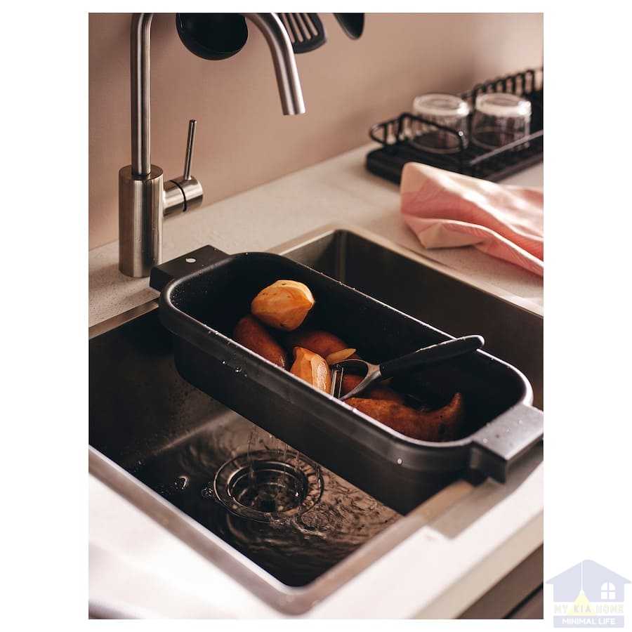 آبکش ایکیا مدل LILLHAVET، یک وسیله آشپزی کاربردی در محیط آشپزخانه هر جایی است. از آن به عنوان آبکش یا سینی برای تخلیه ظروف استفاده کنید تا فضای روی میز کار آزاد شود. این آبکش ایکیا چد منظوره هم به عنوان روشویی و آبکش ظروف و یا برای نگهداری لوازم کاسه سینک استفاده میتوانید بکنید و هم برای شستن میوه و سبزیجات و.. کابرد دارد. همچنین از آنجایی که رو کاسه سینک قرار میگیرد برای صاف کردن مایعات داغ از قابلمهها عالی است. جنس آن از پلاستیک پلی پروپیلن است که بسیار محکم و با دوام است. تاییدیه سازمان مواد غذایی را هم دارد. برای سینک ظرفشویی با ابعاد داخلی 40 سانتی متر بسیار مناسب است. همچنین با سایر لوازم جانبی سری LILLHAVET ترکیب کنید تا یک مجموعه کاری چند منظوره برای خود فراهم کنید. آبکش ایکیا مدل LILLHAVET، قابل شستشو در ماشین ظرفشویی میباشد.