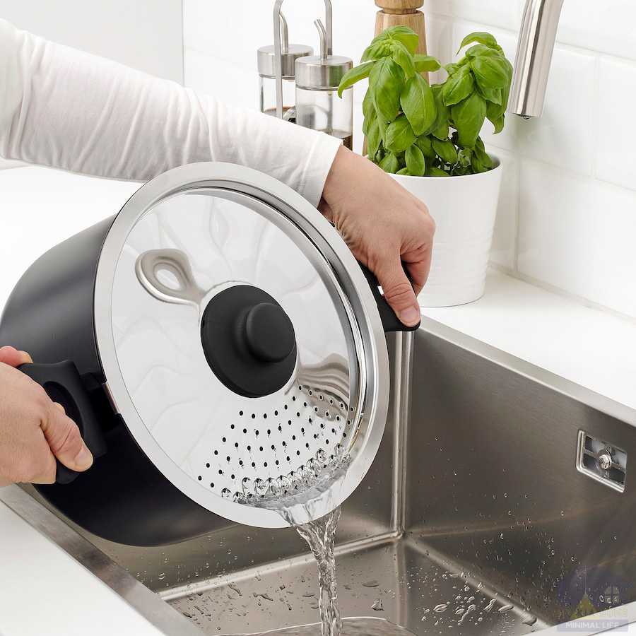 نکته بسیار خوب این سرویس پخت و پز ایکیا داشتن دو دهانه است. بنابراین استفاده از آن برای آشپزهای راست دست و چپ دست آسان است. درب قابلمه 3 لیتری دارای دریچه بخار است که فشار را کاهش میدهد تا غذا به راحتی نجوشد. تابه موجود در این سرویس پخت و پز ایکیا دارای دیواره ها و پایه های ضخیم فوق العاده ای است که حرارت را به طور یکنواخت پخش می کند و نتایج خوبی در پخت دارد.