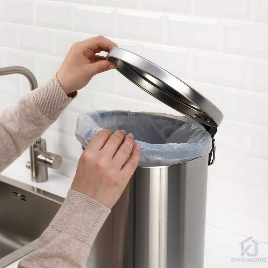 سطل زباله پدالی ایکیا مدل SNORPA، یکی از پرفروش ترین محصولات برند ایکیا در دنیا میباشد. این سطل زباله پدالی در دو حجم 5 لیتری و 12 لیتری است. سطل زباله پدالی ایکیا برای زبالههایی که میخواهید مرتباً خالی کنید یا اگر فضای کمی دارید، عالی است. دسته پشتی، بلند کردن و جابجایی سطل زباله پدالی ایکیا مدل SNORPA را در صورت نیاز آسان میکند. حلقه داخل، کیسه زباله را پنهان کرده و در جای خود نگه میدارد. تمیز کردن داخل آن آسان است زیرا مکانیزم پدال در قسمت بیرونی قرار دارد. توصیه می کنیم در سطل زباله از کیسه زباله استفاده شود. سطل زباله پدالی ایکیا مدل SNORPA را با یک پارچه مرطوب و یک پاک کننده ملایم تمیز کنید. سپس با یک دستمال تمیز خشک کنید.
