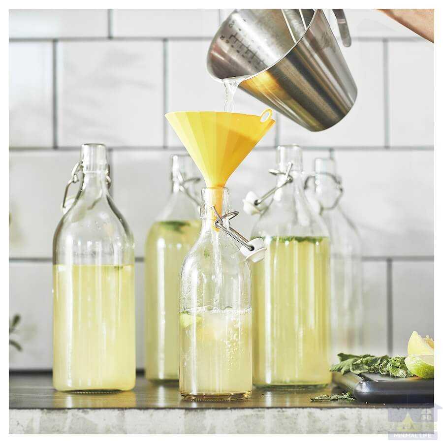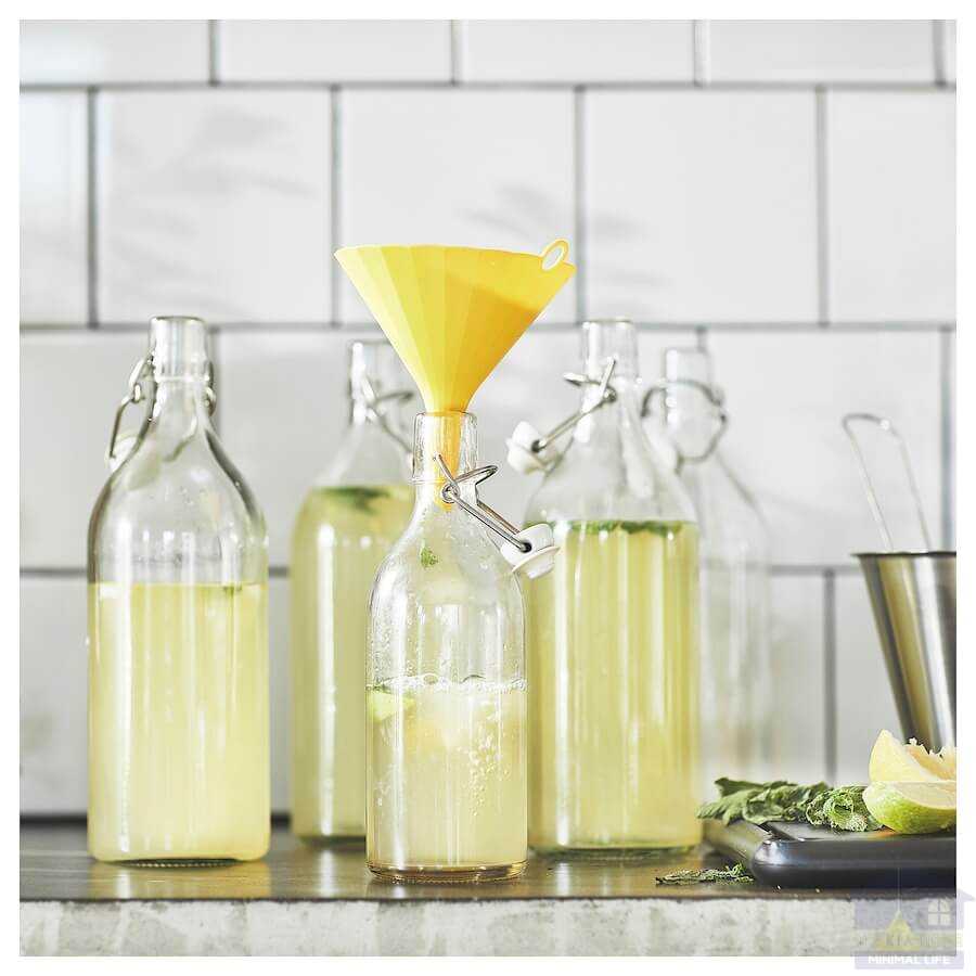 قیف ایکیا مدل UPPFYLLD، برای پر کردن بطریها با آبمیوههای خانگی، لیموناد یا سایر نوشیدنیها عالی است. رنگ زرد جذاب این قیف، نشاط را به آشپزخانه شما میآورد. سری UPPFYLLD کلا سری پر انرژی و خوش رنگ هستند. قیف ایکیا بیشتر جاها با اهداف مختلف کارآمد است. طراحی مواج مانند گل باعث میشود هوا از کنارهها خارج شود و استفاده از قیف را آسان تر میکند. تا 100 درجه سانتیگراد مقاومت میکند. روی بطریهای KORKEN، در همه اندازهها به خوبی کار میکند. این قیف دارای یک سوراخ است که به راحتی میتوانید اویزان کنید. قیف ایکیا مدل UPPFYLLD، قابلیت شست و شو در ماشین ظرفشویی را دارد.