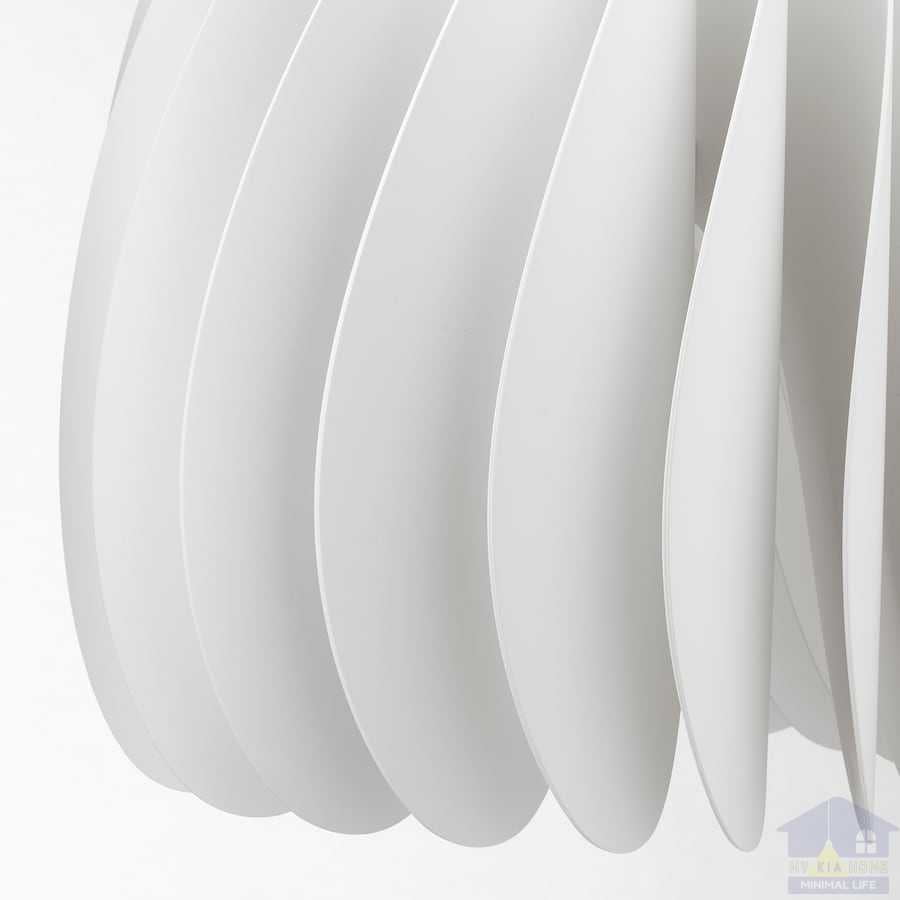 چون به خاطر طراحی خاص و زیبا دارای جایزه بین المللی است. درصدی از مواد اولیه آن از پلاستیک بازیافتی است. شکل توربین منحنی نور دلپذیری را پخش میکند و مهم نیست که کجا آن را آویزان کنید، زیرا چشم نواز است. برای روشنایی عمومی اتاق میتوانید چراغ آویز را روی میز ناهارخوری یا نزدیک به سقف آویزان کنید. شرکت IKEA لامپ LED E27 کرهای سفید عقیق را توصیه میکند. این لوستر ایکیا به راحتی به قلاب روی سقف آویزان کنید.راستی لوستر ایکیا مدل SKYMNINGEN را فقط با گردگیر تمیز کنید.