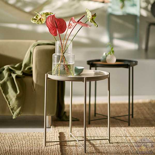 میز ایکیا مدل GLADOM یک میز فوق العاده زیبا و کاربردی در هر منزل و محیطی میباشد. این میز ایکیا یک میز چندکاره است. اولا اینکه این میز ایکیا را میتوانید هر جایی که دوست دارید استفاده کنید. برخی کنار تخت بعنوان پاتختی، برخی آن را در کنار ست پذیرایی به عنوام میز سرو تنقلات و نوشیدنی، و برخی آن را کنار پنجره برای دکور و نگه داشتن گلدان و یا وسایل کوچکشان استفاده میکنند. دوما، قسمت بالایی میز میتواند به عنوان یک سینی باشد و از میز جدا کنید و در هنگام سرو آن را جابجا کنید. پس از استفاده دوباره براحتی در مکان اول خود قرار دهید. نحوه استفاده کاملا به خود شما بستگی دارد. طراحی لبههای میز هم بگونه ایست که کل میز را به راحتی بتوانید جابجا کنید و خطر لغزش و سر خوردن لیوانها، کاسهها و.. را کاهش دهید.