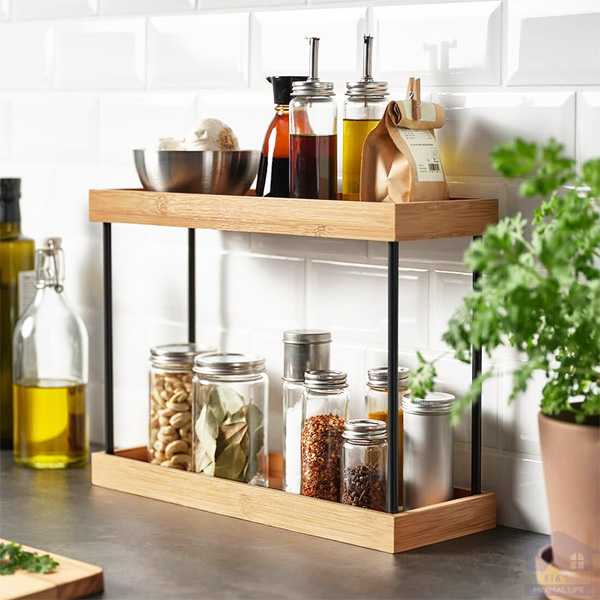 نظم دهنده آشپزخانه ایکیا مدل NALBLECKA، یک وسیله کاربردی و زیبا در محیط آشپزخانه و یا حتی میز کار شما خواهد بود. جنس آن از بامبو است و جنس میلهها از پلی استر است. به راحتی شیشهها، بطریها و بانکرها رو داخل آن ساماندهی کنید. ادویهجات شما ازین پس منظم و در دسترس خواهد بود. محیط کار یا آشپزخانه مرتب و تمیز خواهد بود و دسترسی به موارد مورد نیاز راحتتر است. در صورت کثیف شدن نظم دهنده آشپزخانه ایکیا مدل NALBLECKA، کافیست آن را با یک پارچه مرطوب تمیز کنید. به شما توصیه میکنیم با سایر محصولات چوبی ایکیا، محیط آشپزخانه را گرم و گیرا کنید.