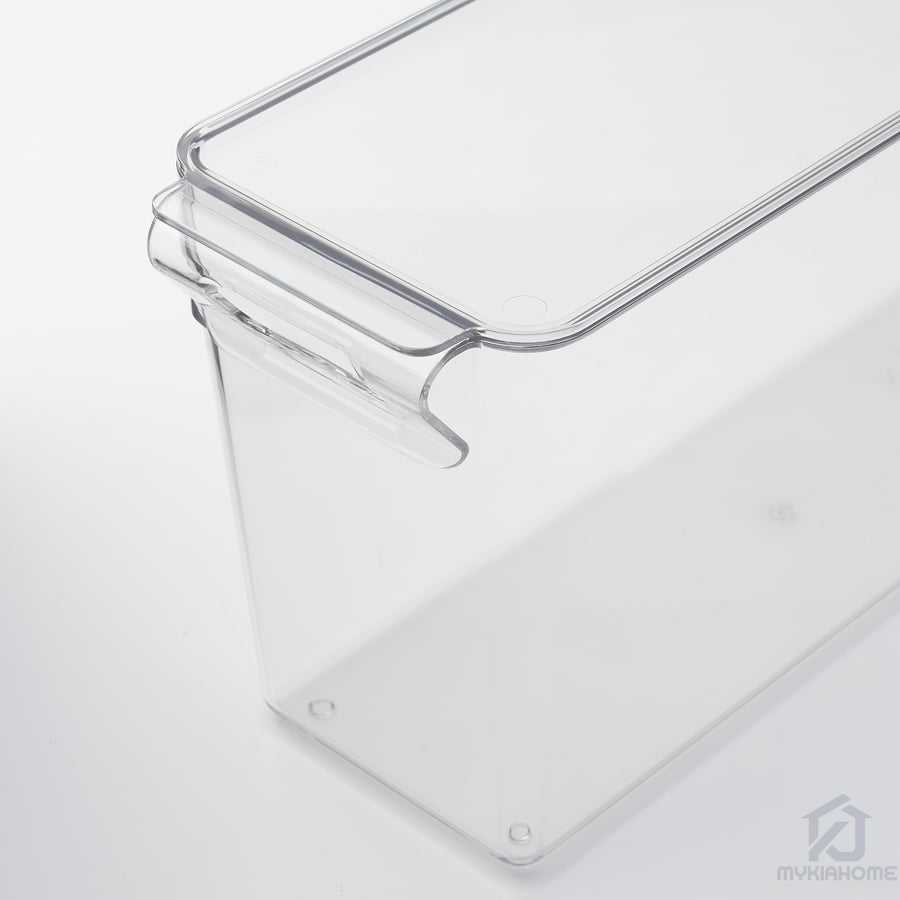نظم دهنده یخچال ایکیا مدل KLIPPKAKTUS، یک ارگانایزر بادوام با درب است. وقتی درب آن را میبندید، به تازگی مواد غذایی خود فرصت بیشتری میدهید. به راحتی میوهها، سبزیجات، کنسروها، نوشیدنیها و سایر چیزهایی را که معمولاً در یخچال نگهداری میکنید، سازماندهی کنید. باکس شفاف است و داخل آن به راحتی دیده میشود و مواد غذایی خود را پیدا میکنید. زیر دستگیره داخلی، یادداشت برای خود و دیگرا قرار دهید. جنس آن از پلاستیک PET است و قابلیت استفاده در فریزر را هم دارد. حواستان باشد فقط با دست بشورید. و یا نظم دهنده یخچال ایکیا مدل KLIPPKAKTUS با یک پارچه نرم مرطوب و یک ماده شوینده ملایم یا صابون پاک کنید سپس حتما با یک دستمال نرم خشک کنید.