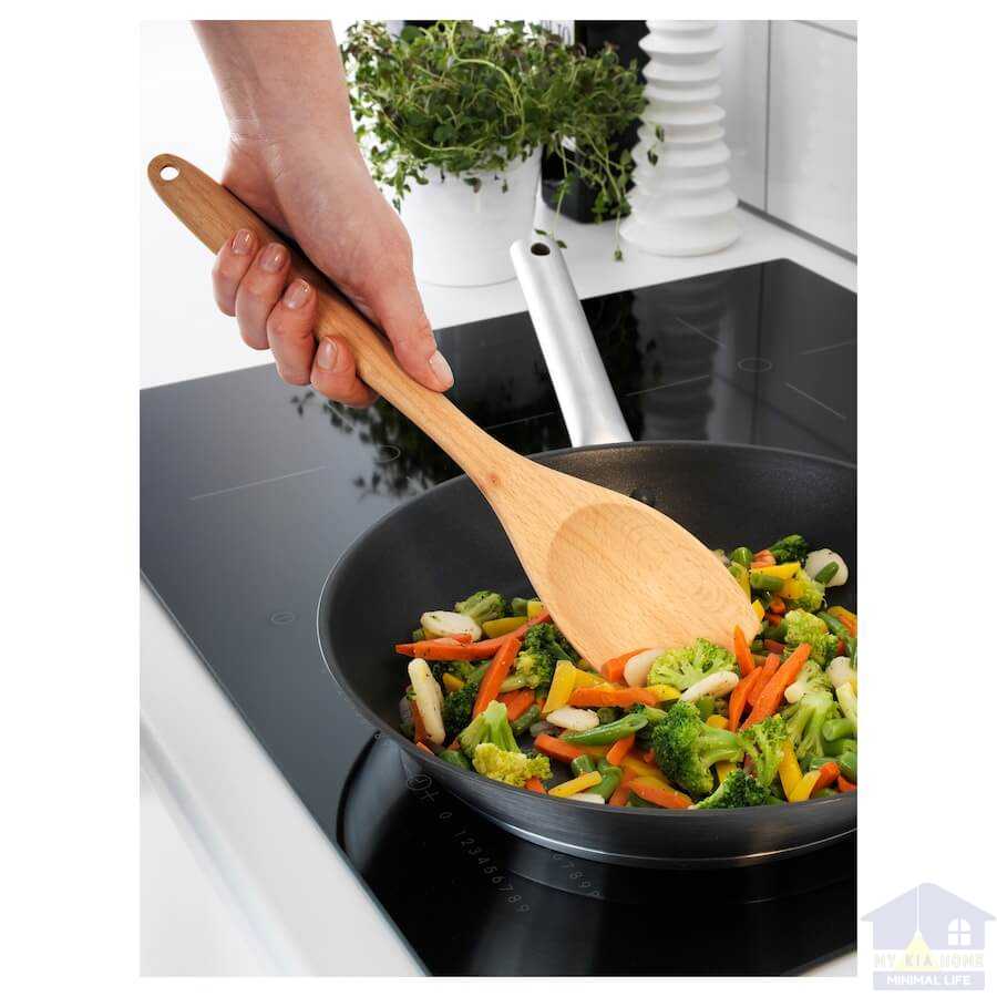 کفگیر چوبی ایکیا مدل RORT، یک کفگیر ساده و کاربردی در آشپزخانه هر جایی است. جنس آن از چوب راش جامد است. این کفگیر چوبی مناسب برای قابلمه و تابههایی با روکش نچسب است زیرا اثری از خط و خش نخواهد بود. برای افزایش عمر، بهتر است هر از گاهی با روغن چوب، روغنکاری کنید. کفگیر چوبی ایکیا مدل RORT را فقط با دست بشورید.