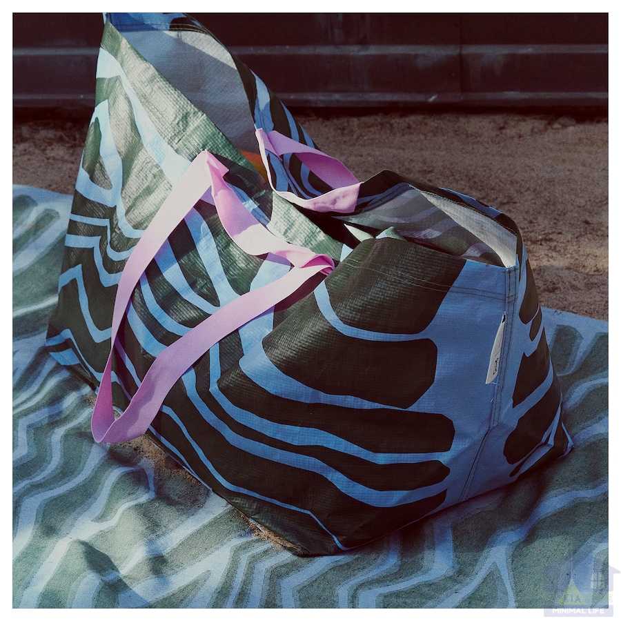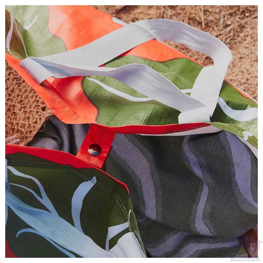 کیسه حمل ایکیا مدل BASTUA، یک محصول کاربردی برای حمل وسایل کمپ و پیک نیک و سفر است. اگر اهل سفر و پیک نیک هستید، توصیه میکنیم یکی از این کیسه حملهای ایکیا را داشته باشید. البته این ساک دستی برای خرید هم مناسب است چون فضای خیلی زیادی دارد. از طرف دیگر، کیسه حمل ایکیا فضای خیلی کمی اشغال میکند و راحت آن را تا کنید و یک گوشه بگذارید. از آنجا که محصولات ایکیا دوست دار محیط زیست است، این محصول جایگزین بسیار مناسبی برای کیسههای پلاستیکی است. در صورت کثیف شدن کیسه حمل ایکیا مدل BASTUA، فقط باید یک دستمال مرطوب آن را تمیز کنید. ایکیا سری محصولات BASTUA را در کالکشن محدود طراحی و تولید کرده است.