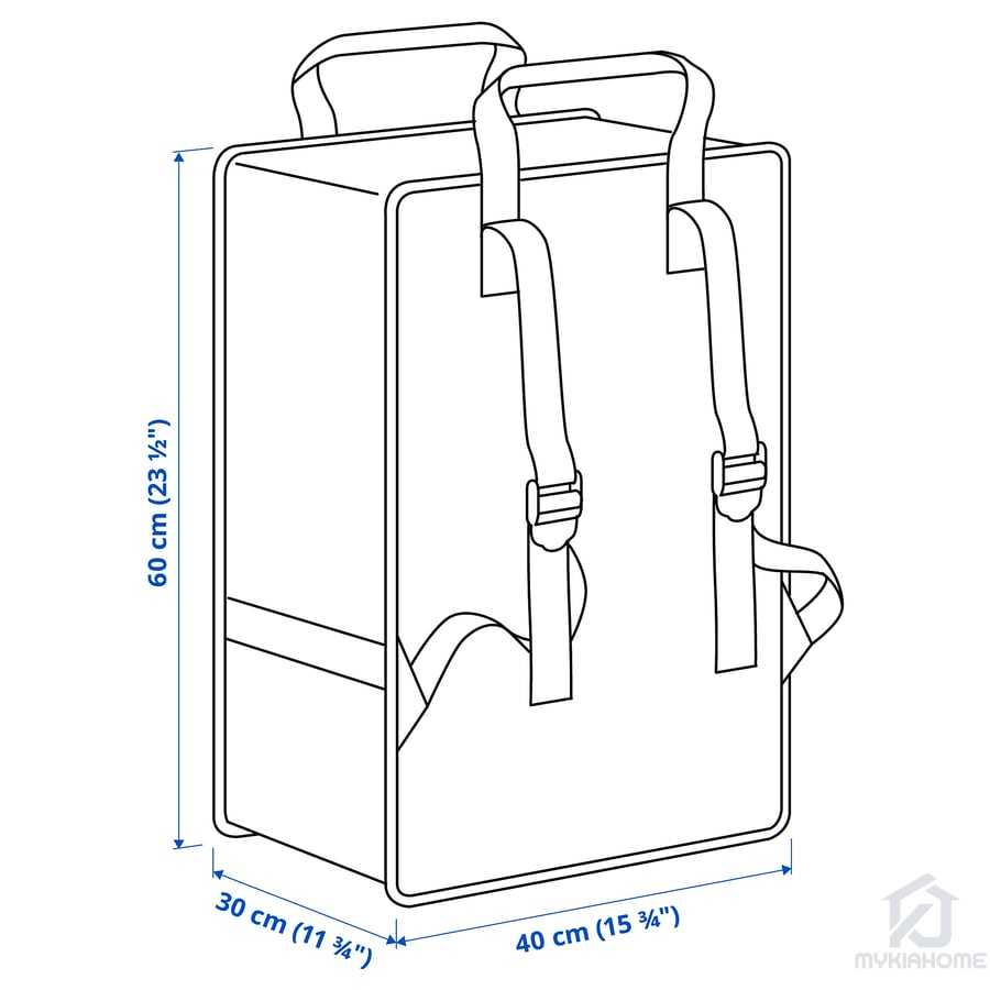 کیف کوله ای ایکیا مدل GORSNYGG، یک بگ بسیار کاربردی است که فضای کمی را اشغال میکند. چیزهای زیادی را در خود جای میدهد پس با خیال راحت لوازم خود را ساماندهی کنید. مناسب برای حمل اکثر چیزها، از لباسهای شسته شده و اقلام خرید گرفته تا زبالههای خشکی که قصد بازیافت آنها را دارید. میتوانید به راحتی آن را بستهبندی کنید، وسایل را بیرون بیاورید و ببینید چه چیزی داخل کیف است، زیرا زیپ در امتداد جلو قرار دارد. همچنین میتوانید کیف را به دو روش از طریق دستهها یا روی پشتتان با بندهای بلند روی شانههایتان حمل کنید. از سفید کننده و خشکتمیز کردن کیف کوله ای ایکیا مدل GORSNYGG، فقط با یک پارچه مرطوب آسان است.