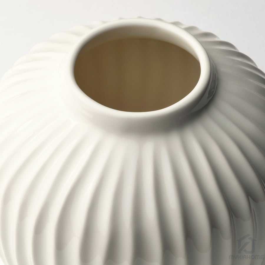 گلدان سفید سفالی ایکیا مدل PELARBJORK، یک گلدان با سطحی مات به رنگ سفید جلوه‌ای شیک و زیبا به فضای پیرامونی می‌بخشد. زیبایی کلاسیک با شکلی گرد و پیازی و شیارهای زیبا به شما این اجازه را می‌دهد که با توجه به سلیقه خود در منزل یا محیط کار خود از این گلدان سفالی ایکیا استفاده کنید. گلدان سفید سفالی ایکیا مدل PELARBJORK برای افزودن جذابیت به میز ناهارخوری یا هر جای خانه عالی است. به عنوان گلدان برای گل‌ها یا به عنوان یک شیء تزئینی در سراسر خانه به خوبی عمل می‌کند. شما می توانید به عنوان یک ظرف دکوری از آن استفاده کنید و این کاملا به سلیقه و نیاز شما بستگی دارد. توصیه می‌کنیم گلدان سفید سفالی ایکیا مدل PELARBJORK را فقط با دست بشورید.