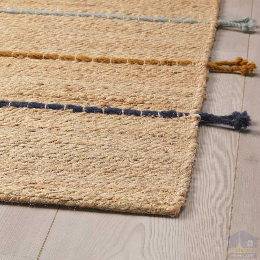 گلیم دست بافت ایکیا مدل RAKLEV، یک مدل زیبا از شرکت ایکیا برای شما هست. نخ پشمی بافتنی برای افزودن رنگ و شخصیت به فرش طبیعی جوت است. جنس پایه این گلیم از کناف هندی است که یک ماده بادوام و قابل بازیافت با تنوع رنگ طبیعی است. جاروبرقی به از بین بردن بویی که فرش نو دارد کمک میکند. اگر گلیم ایکیا دارای لک شد کافیست آن را بخراشید. لکه های مرطوب را نمالید. به جای آن، با دستمال کاغذی یا پارچه مرطوب به همراه مواد شوینده ملایم، آن را تمیز کنید. اصلا از سفید کننده و اتو و خشکشویی استفاده نکنید. در صورت نیاز، گلیم دست بافت ایکیا را به مراکز حرفهای شست و شو ببرید.
